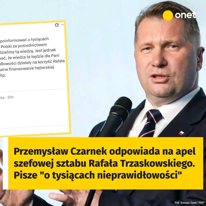Przemysław Czarnek odpowiedział na apel: “Wielce Szanowna Pani, pragnę Panią poinformować o tysiącach nieprawidłowości zgłaszanych z całej Polski za pośrednictwem ROW2025.pl” — napisał na platformie X.